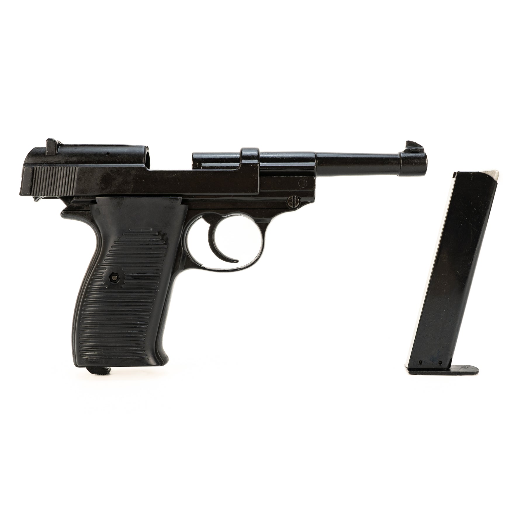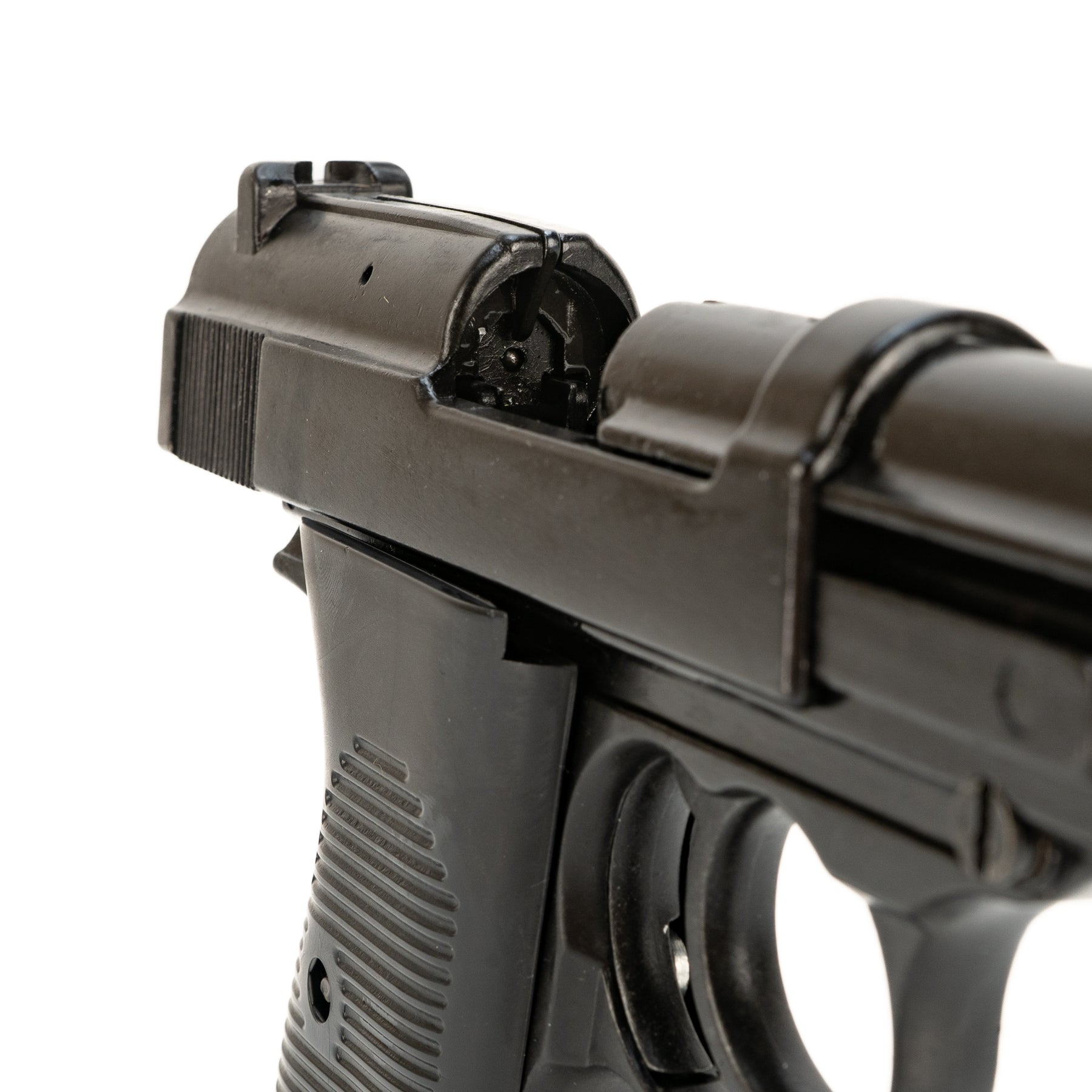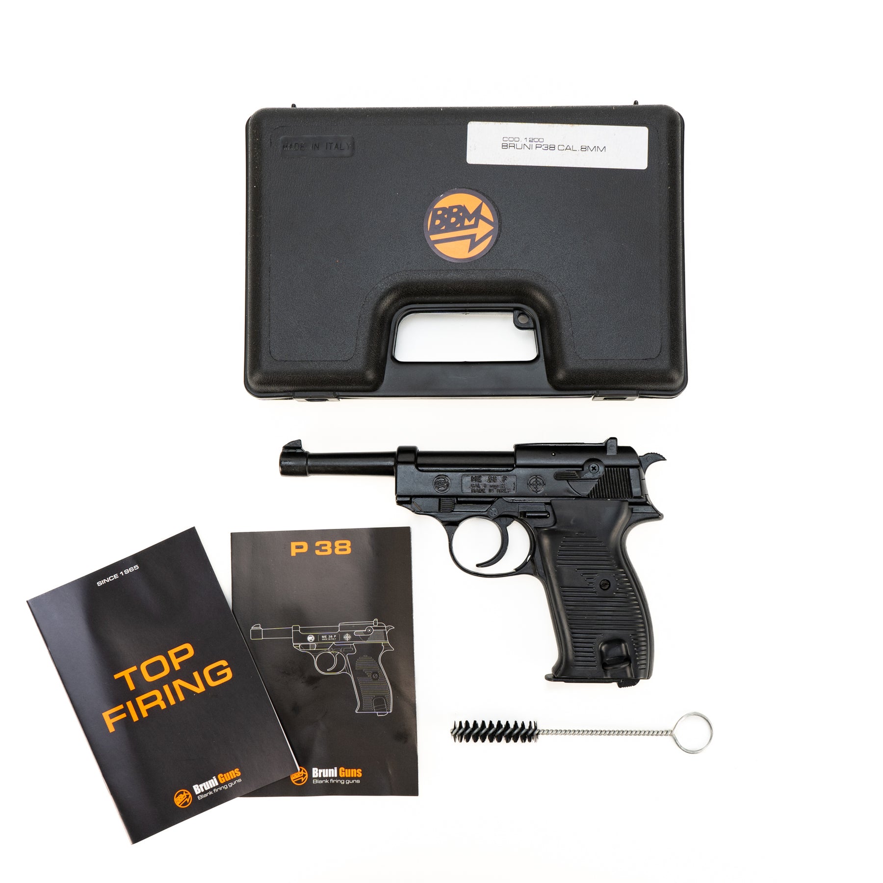 Bruni Model P-38 Semi-Automatic Top Venting Blank Firing Pistol chambered in 9mm PAK. Brand new with original case, manual and cleaning brush.