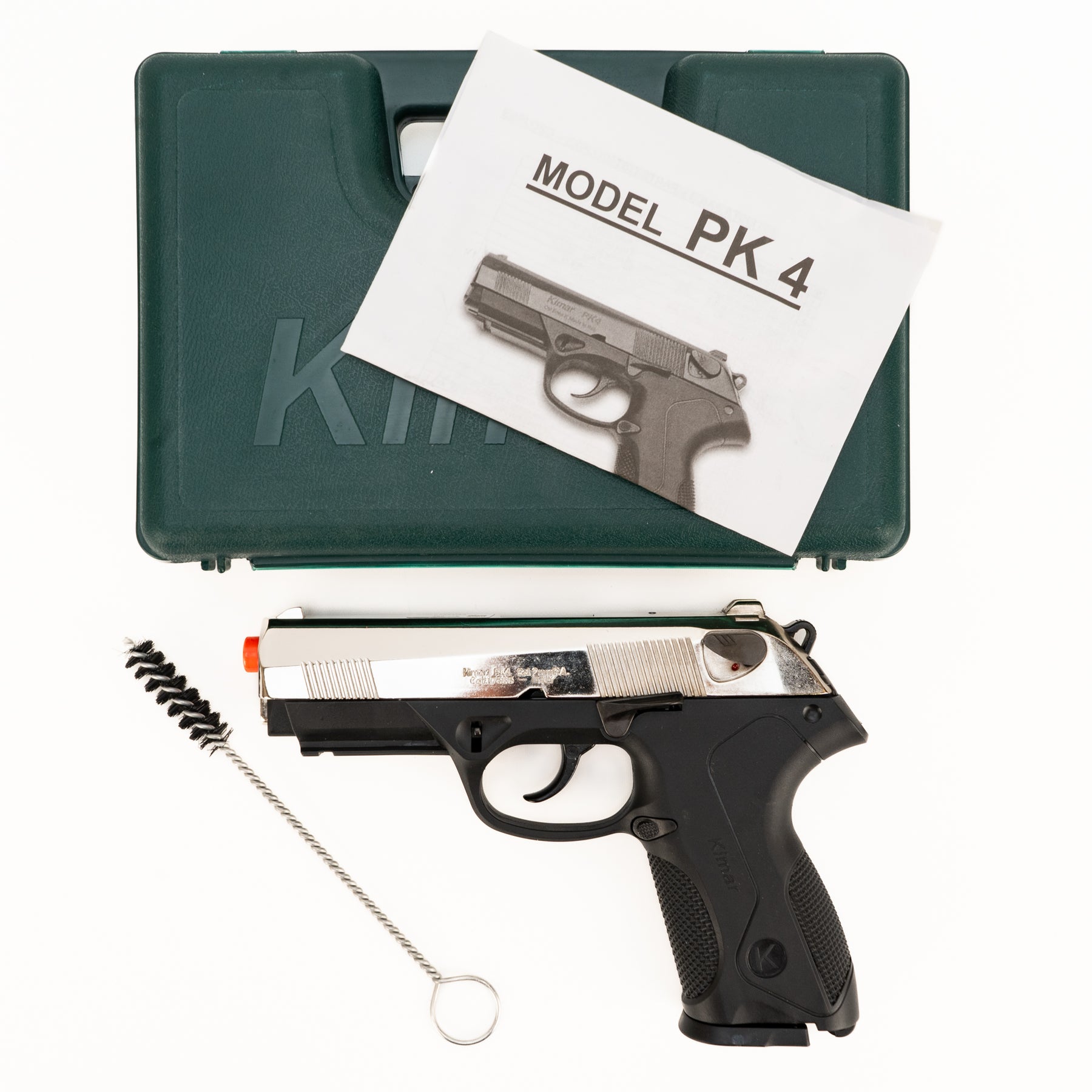 Kimar Model PK4 Semi-Automatic Front Venting Blank Firing Pistol chambered in 9mm PAK. Comes with original case, manual & cleaning brush.