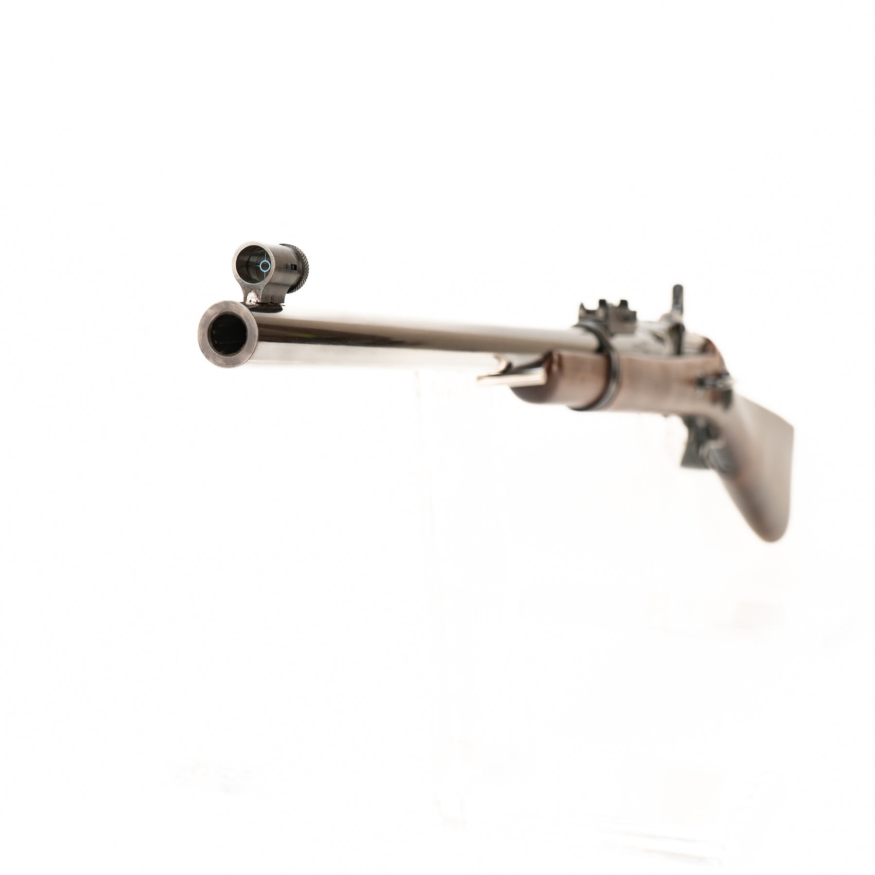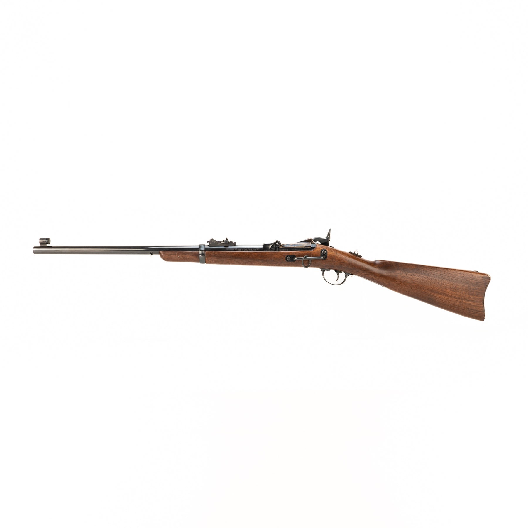 Bore is bright and clean with strong rifling. Finish is 9'10 with original bluing and a case hardened trapdoor. Equipped with removable target sights as well as the standard ladder sight.