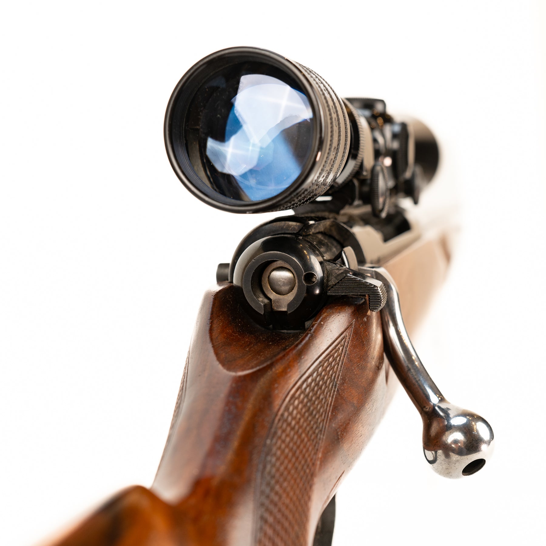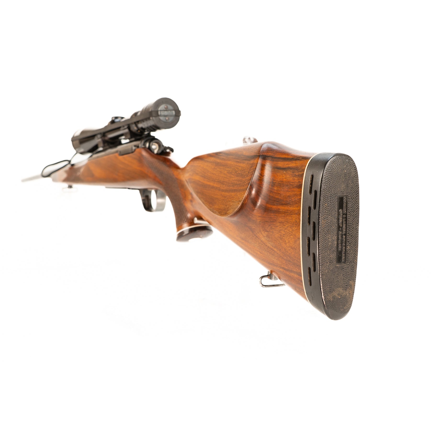 These are phenomenal guns and quite sought after by shooters, known for their excellent craftsmanship and quality barrels. This piece has been nicely rechambered in the very accessible 7mm Remington Magnum cartridge, making it much more shootable than its original obsolete caliber of 7x61 S&H.