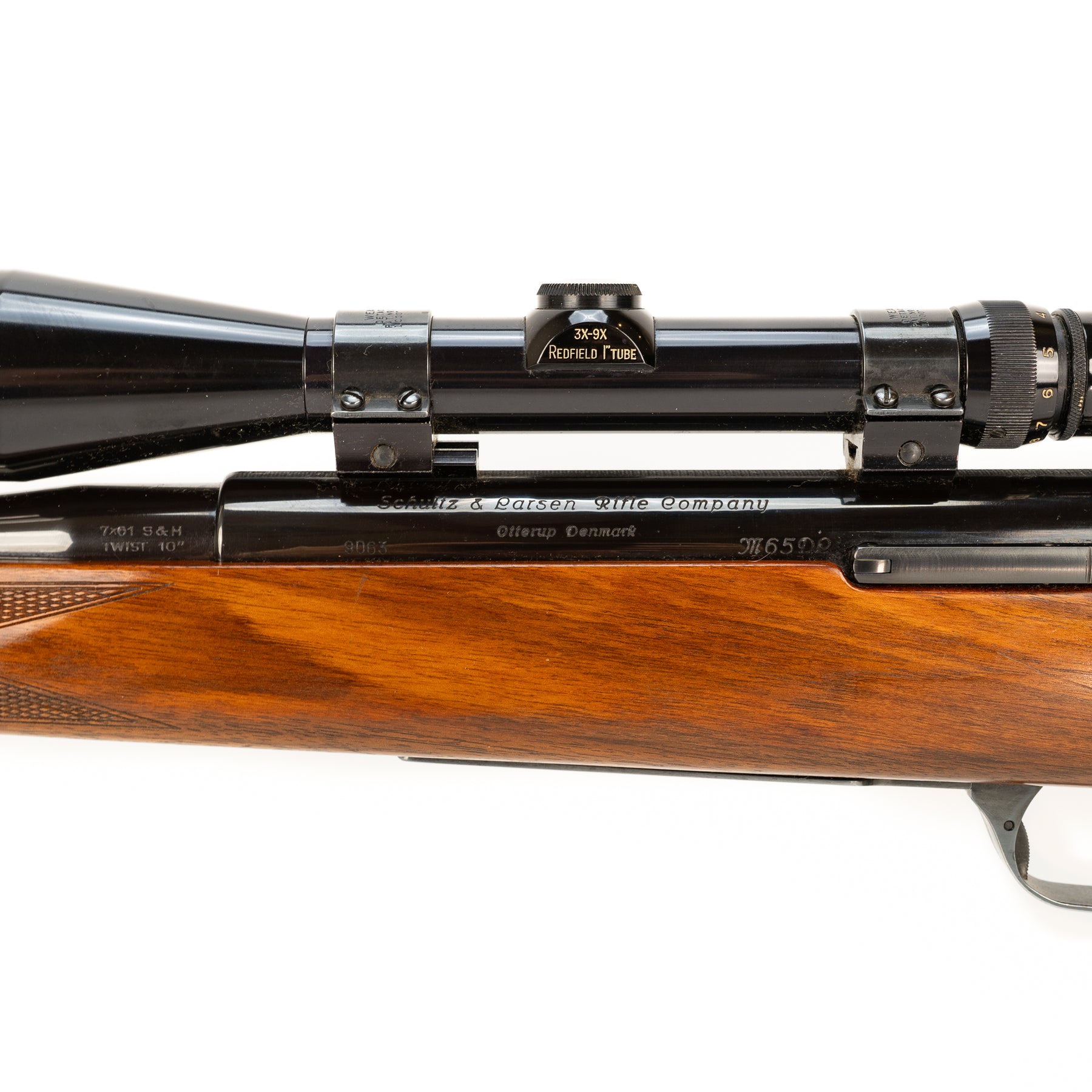 A beautiful Schultz & Larsen M65DL Bolt Action Rifle with Redfield 1" Tube Scope, RECHAMBERED in 7mm Rem. Mag. The barrel is still marked with the original caliber and WILL need to be restamped by a gunsmith for safety's sake.
