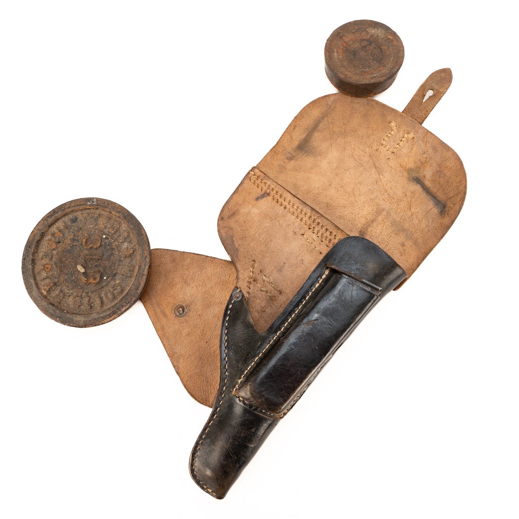 A World War II era Walther P38 Semi-Automatic Pistol chambered in 9mm Luger, with an original leather holster and two magazines.