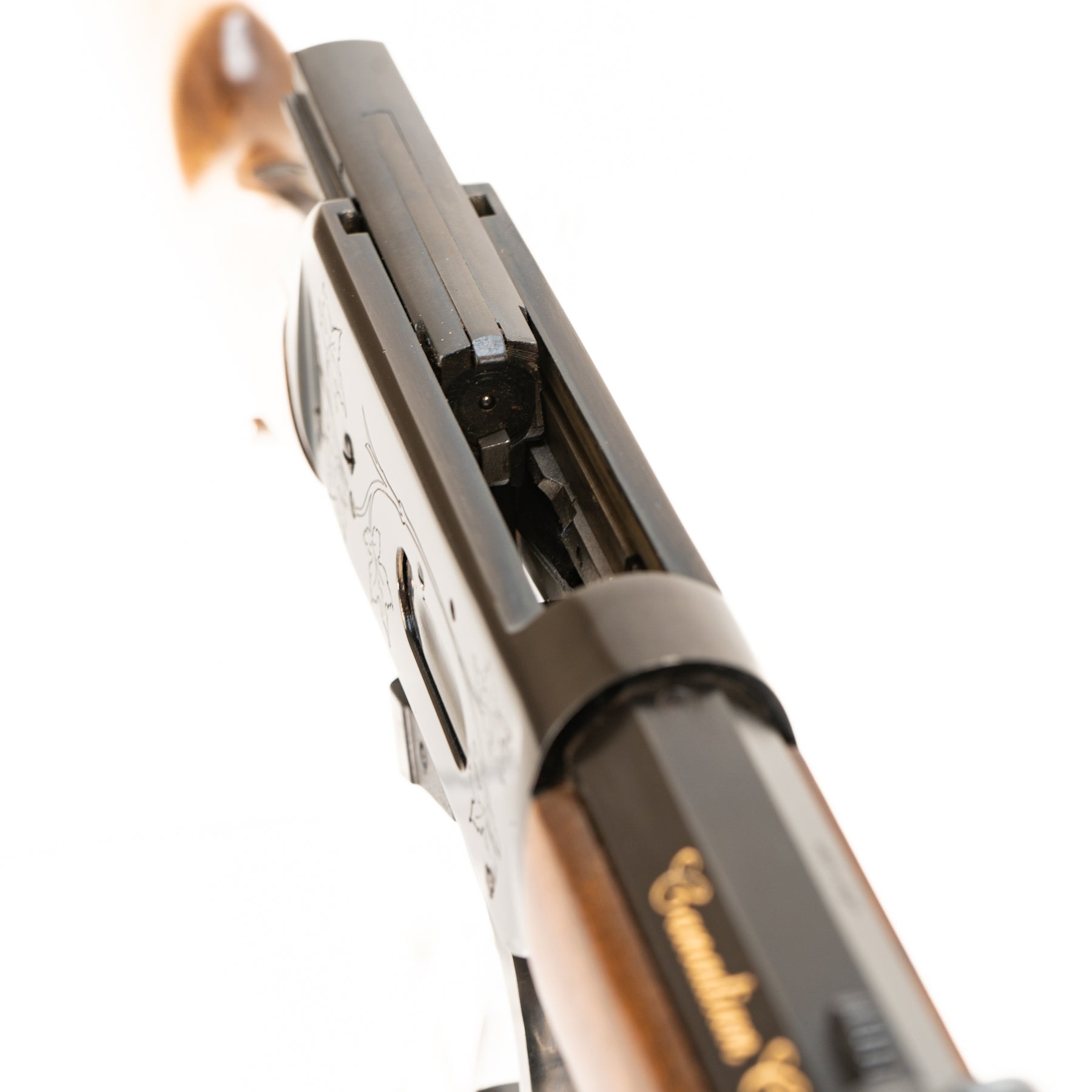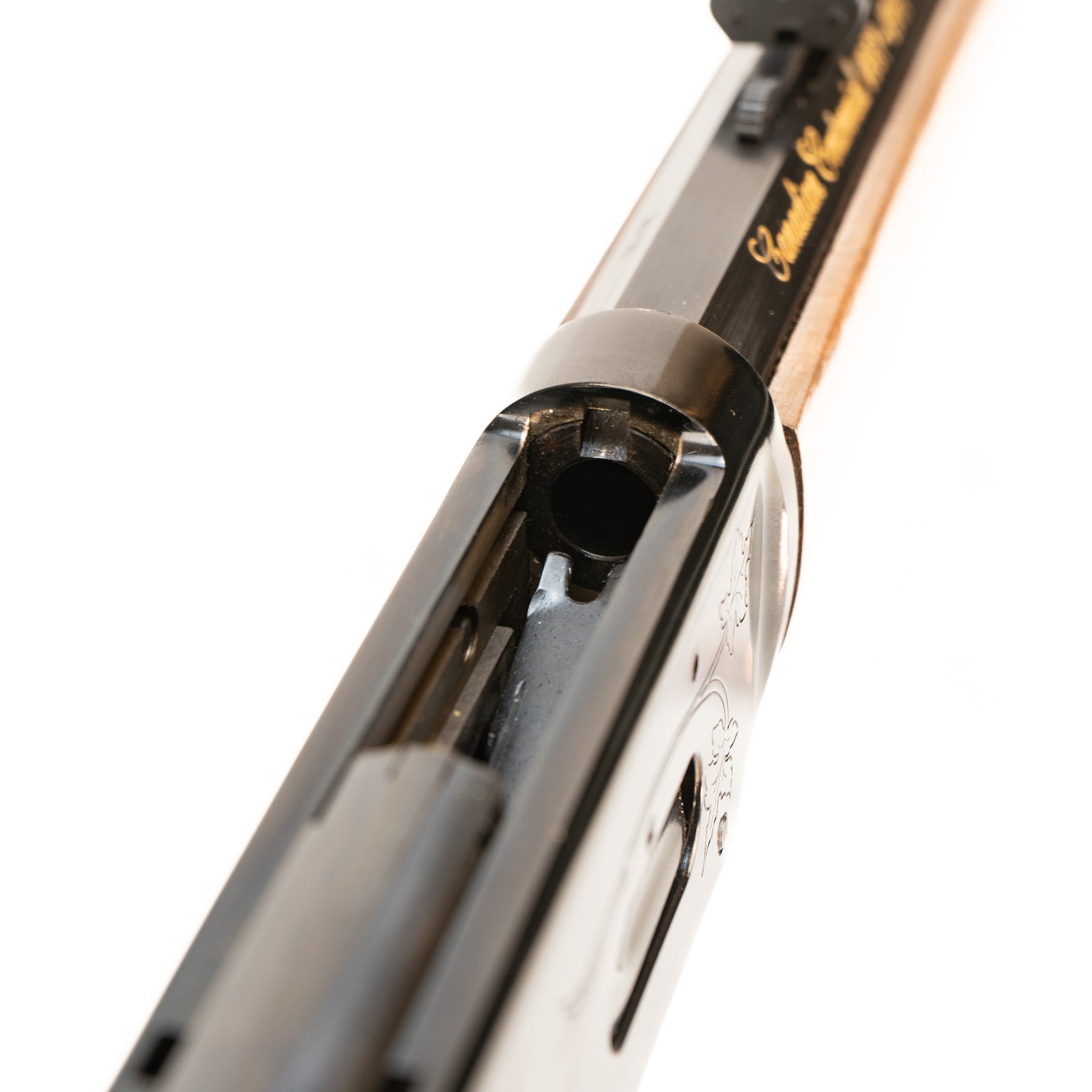All original in its original box, and it appears to have had little if any use at all! Bore is bright and clean with strong rifling. Action is strong and crisp. Engraved on both sides of the action with scrolling maple leaves, and marked with its model in gold writing on both the side of the octagonal barrel and on the back strap. Wood stocks have minimal wear. Please enlarge and examine all photos to see condition!