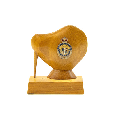 Small NZ Rifle Assn. Teak Kiwi Desktop Plaque w/ Badge