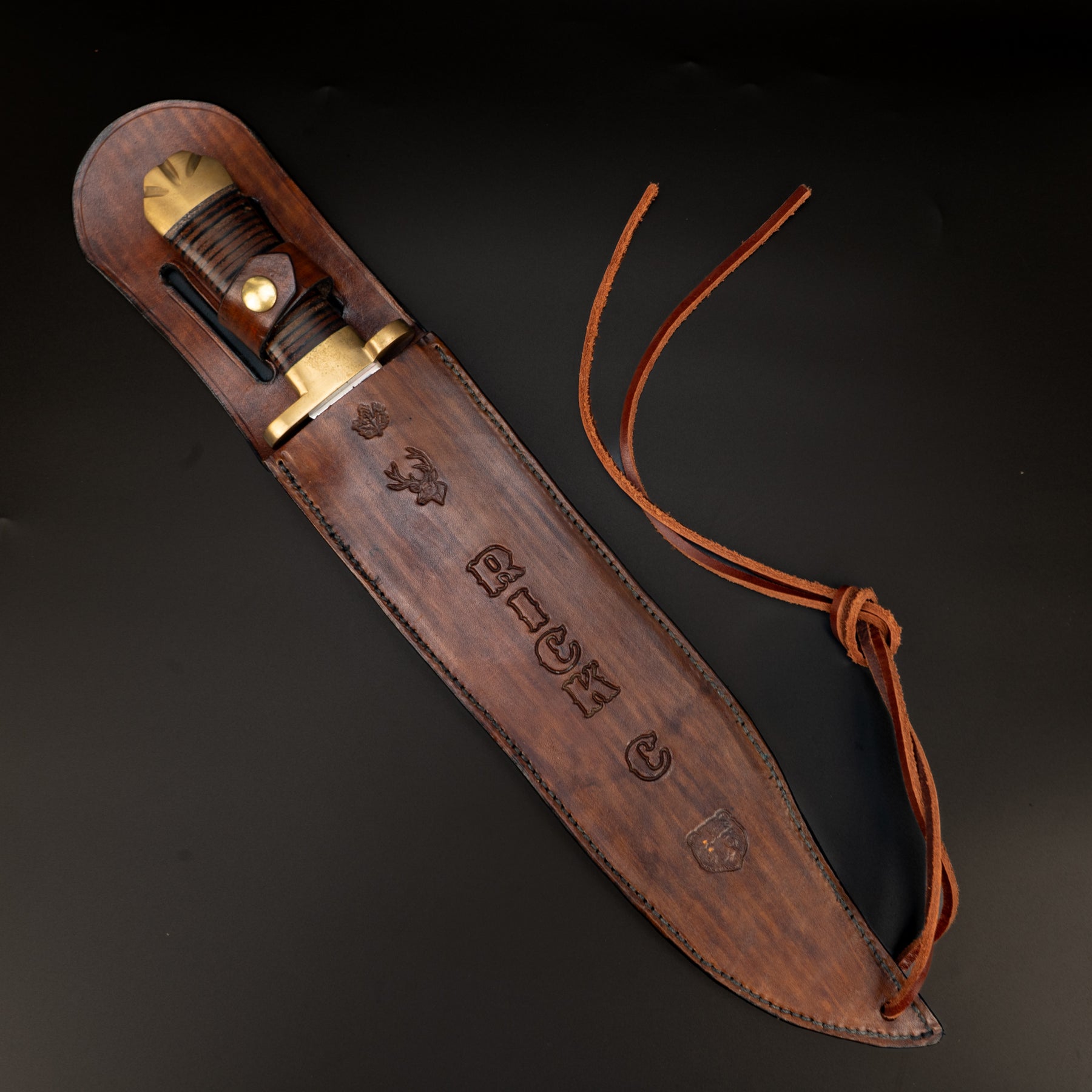 This particular knife came to us with a custom tooled leather sheath, and if your name happens to be Rick C… boy, are you in luck!