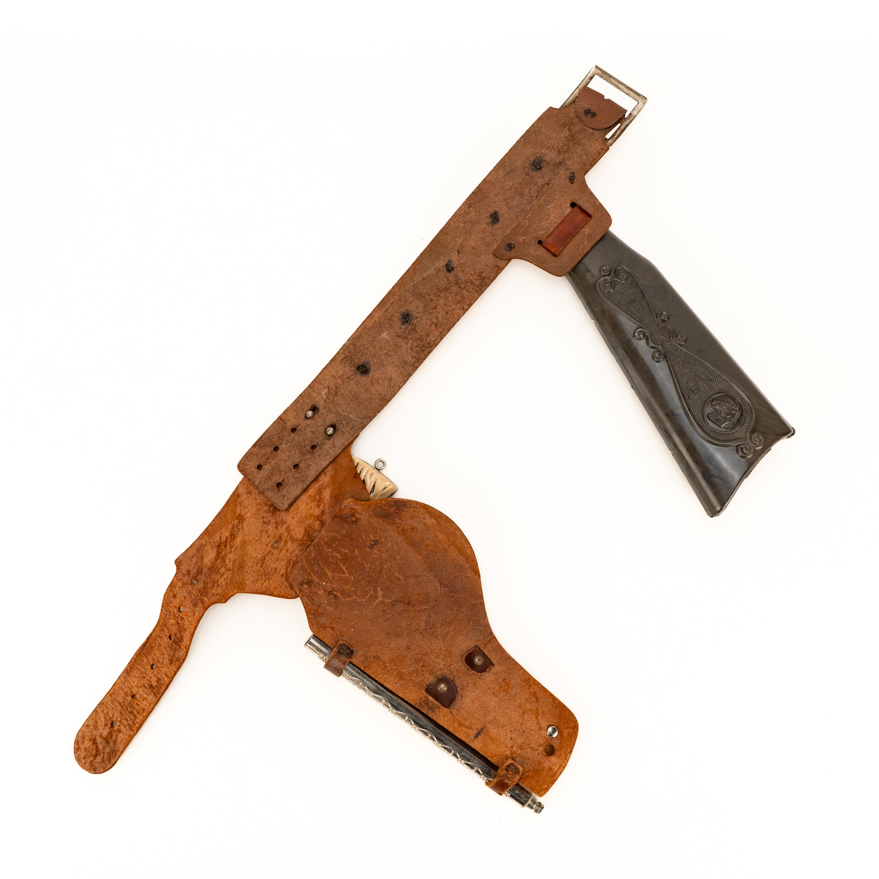 Leslie-Henry Maverick Double Leather Holster & Long Barrel Cap Guns