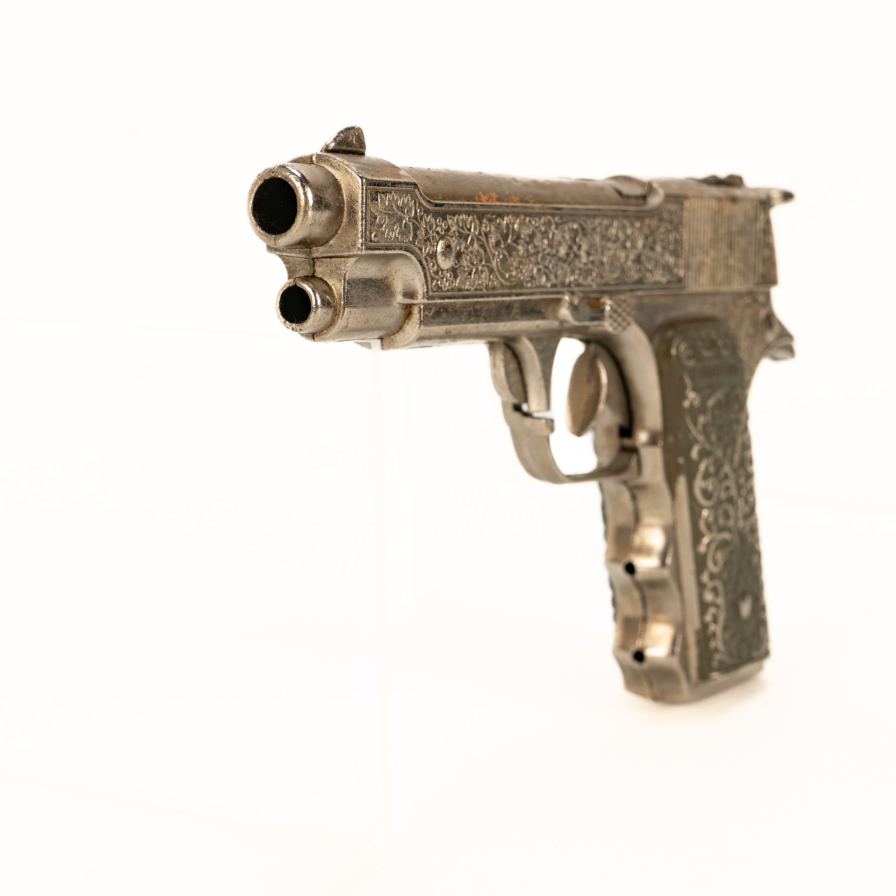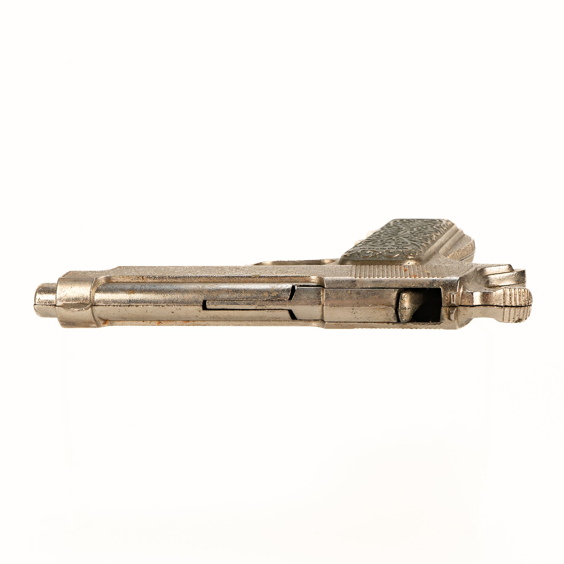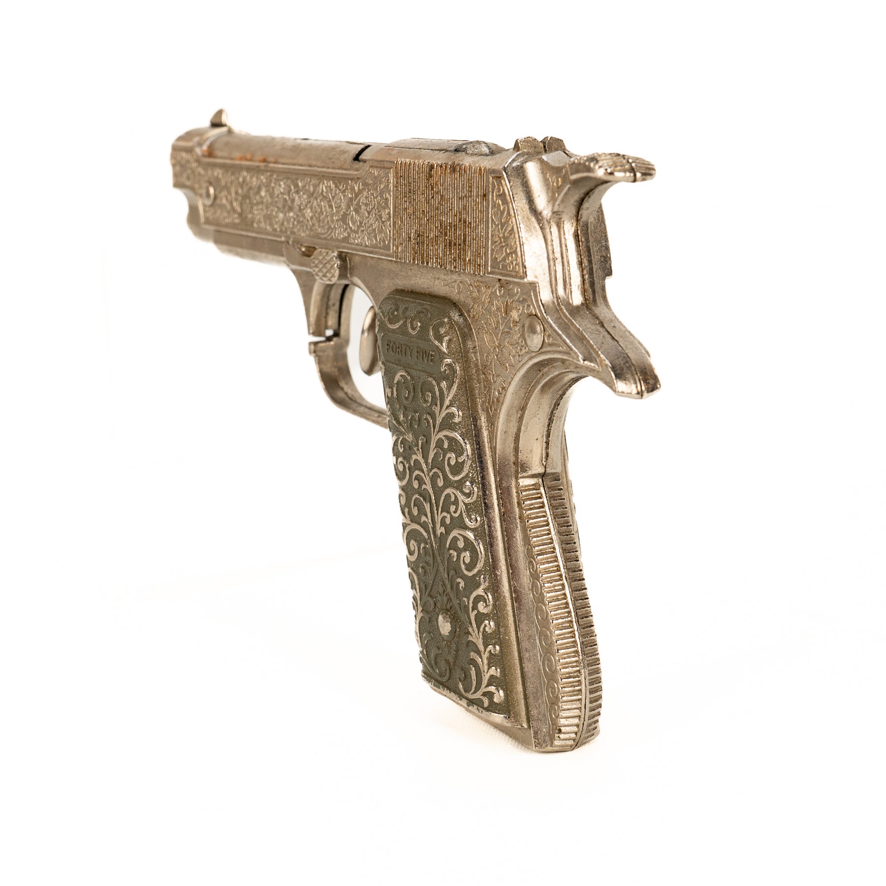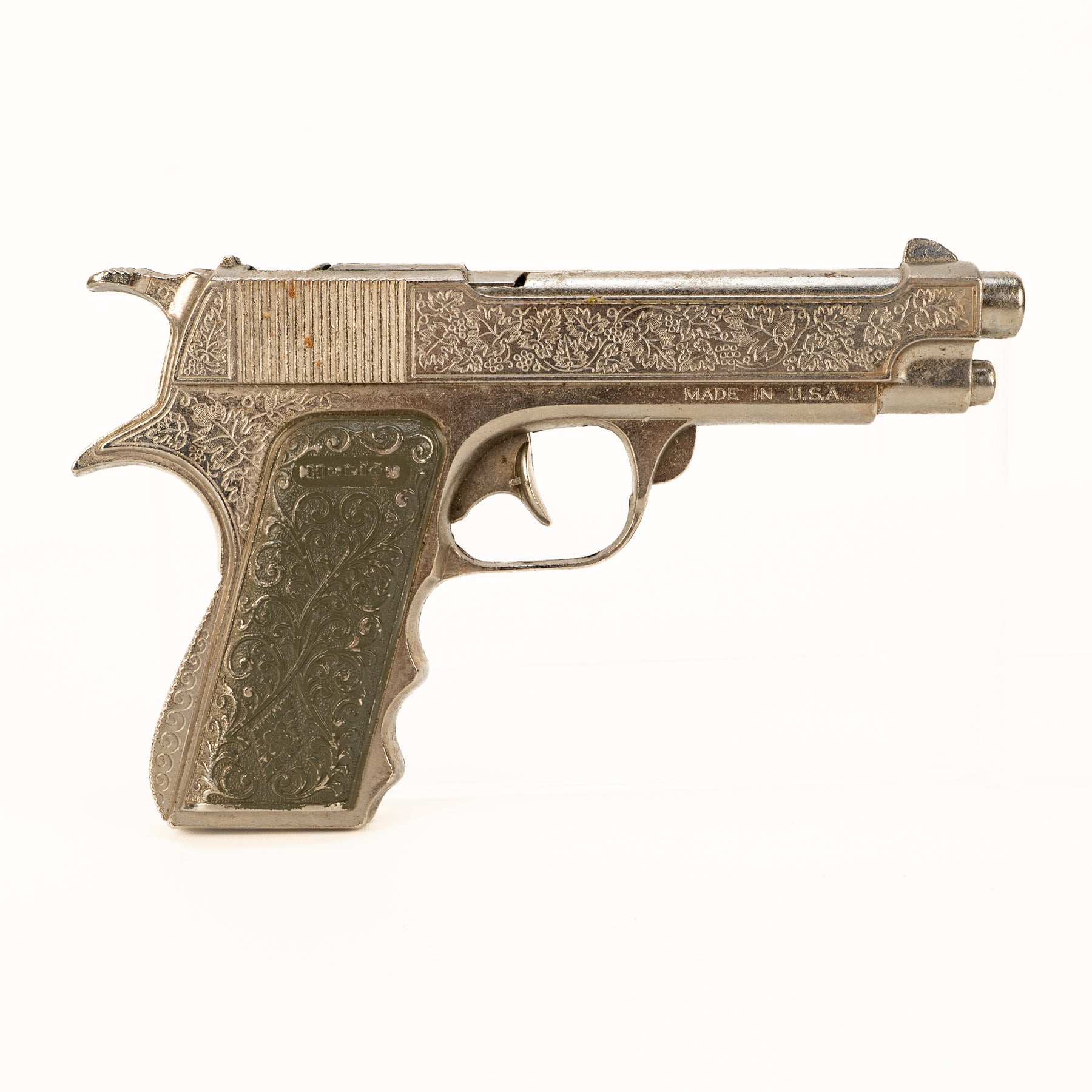 A great little Hubley G.I. Joe Colt .45 Army cap gun with the original knife, sheath, belt & leather holster. The cap gun is in great working order, and the other pieces of the set are in quite good shape! Please enlarge and examine all photos to see condition.