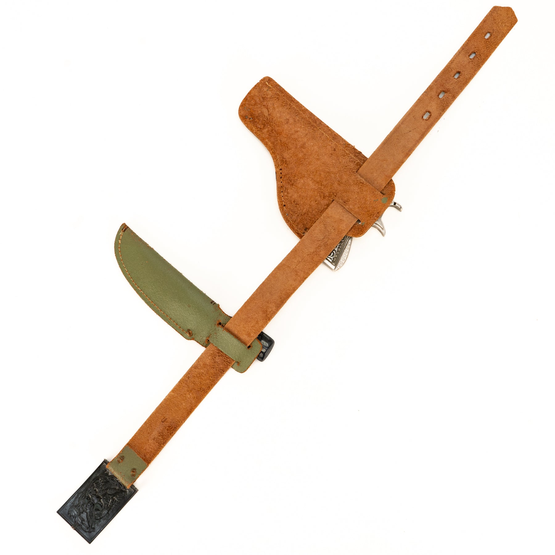 Hubley G.I. Joe Colt .45 Army Cap Gun, Knife, Sheath, Belt & Leather Holster