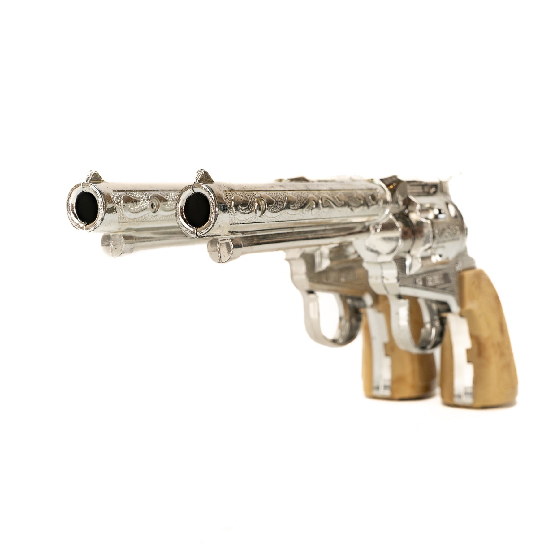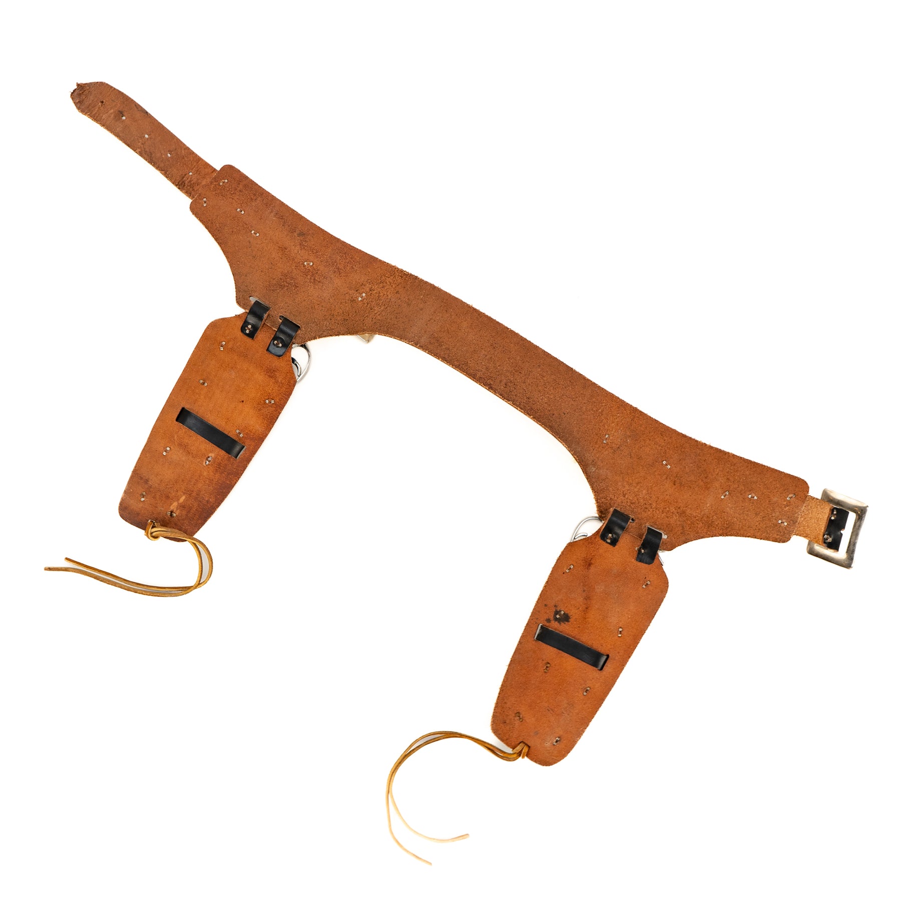 Leslie-Henry Maverick Double Leather Holster & Long Barrel Cap Guns