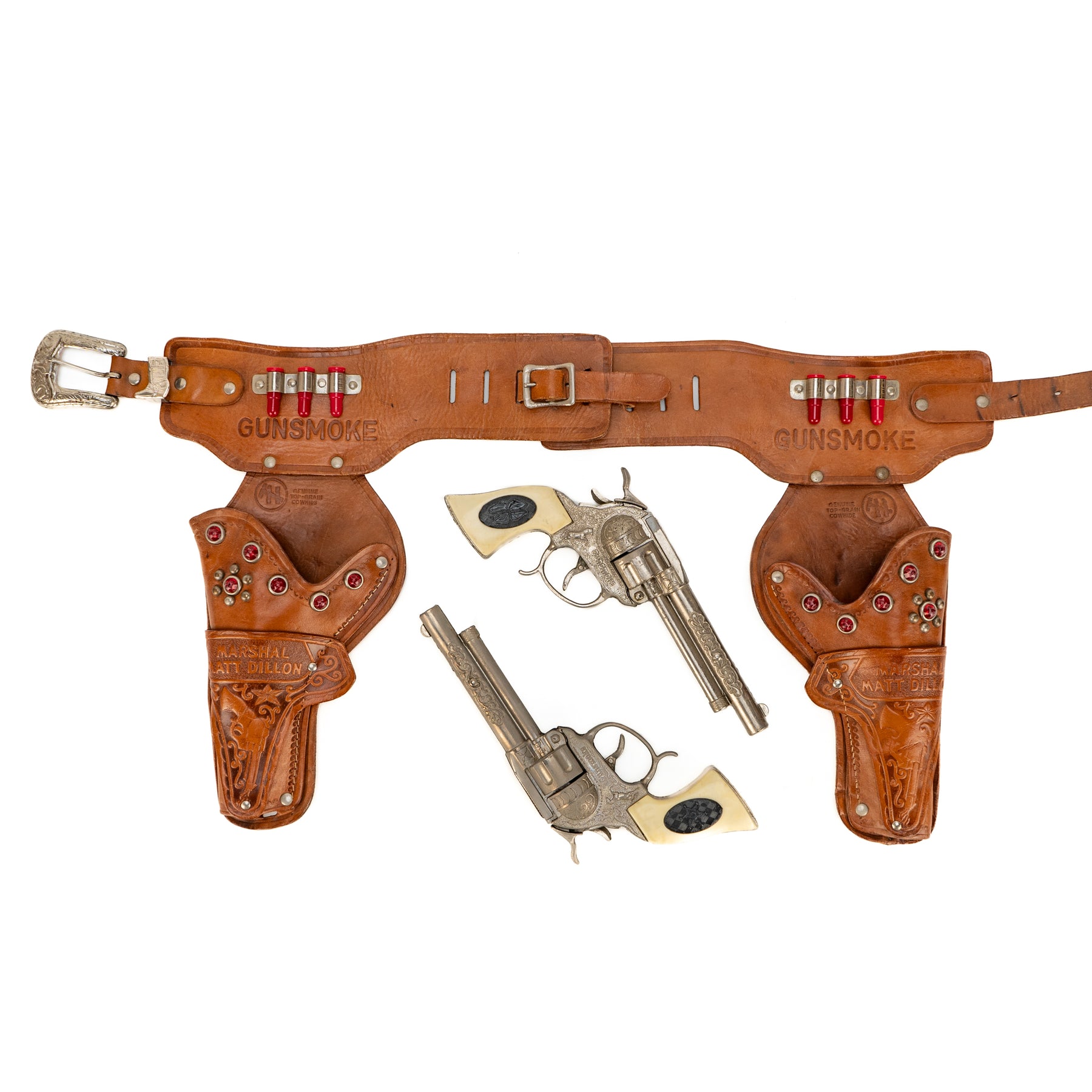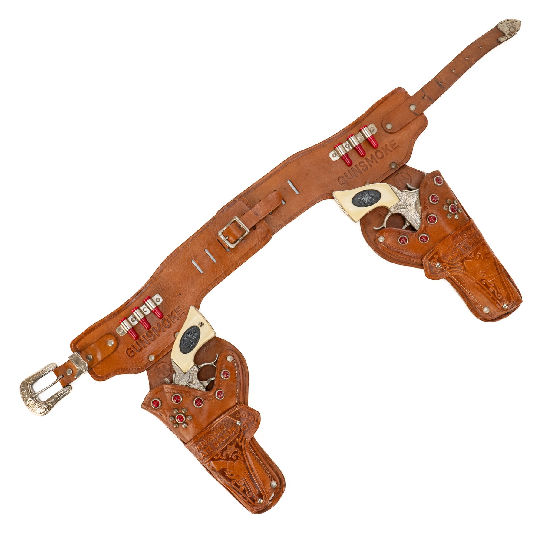 Leslie Henry Gunsmoke Matt Dillon Double Leather Holster & Cap Guns