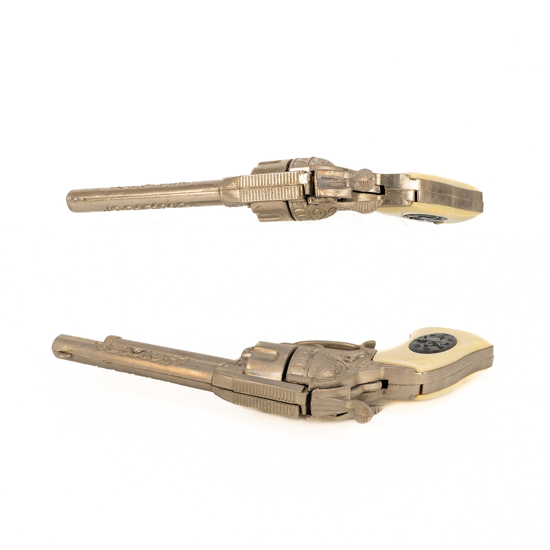 The cap guns are in good working order, and even the spring mechanism for popping them open is nice and strong!
