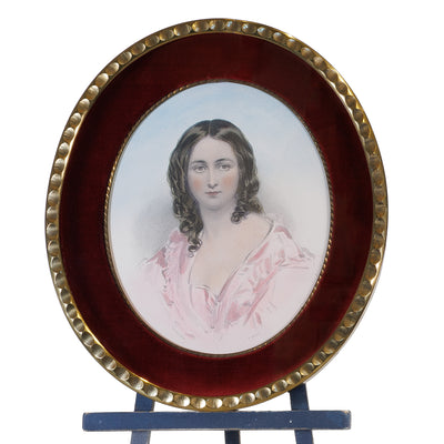 A lovely 1800's engraving by Francis Holl after an art piece by James Fisher. A woman in a pale pink frock gazes just out of frame to your right.