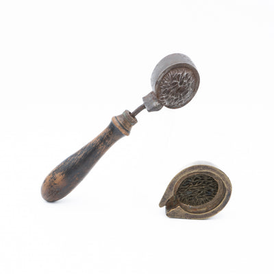 A beautiful antique millinery flower press, used to make floral adornments for hats out of silk. This one makes a perfect lil' nut, roughly 48mm x 26mm including the stem.