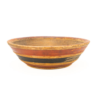 Antique Turned Wood Bowl with Original Red & Blue Paint