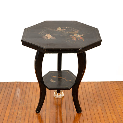 Black Lacquered Knock Down Table with Mixed Metal Inlaid Horseback Warriors
