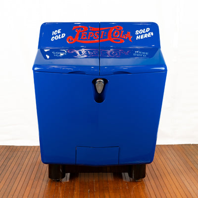 Adding to the "you don't see these every day" fleet, this Pepsi Gullwing Ice Chest in stunning blue and red! These were around between 1939 and 1941 roughly, and this is the earlier model that operated purely as an ice chest with no refrigeration.