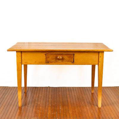 A beautiful Canadiana pine kitchen work table with a single drawer.