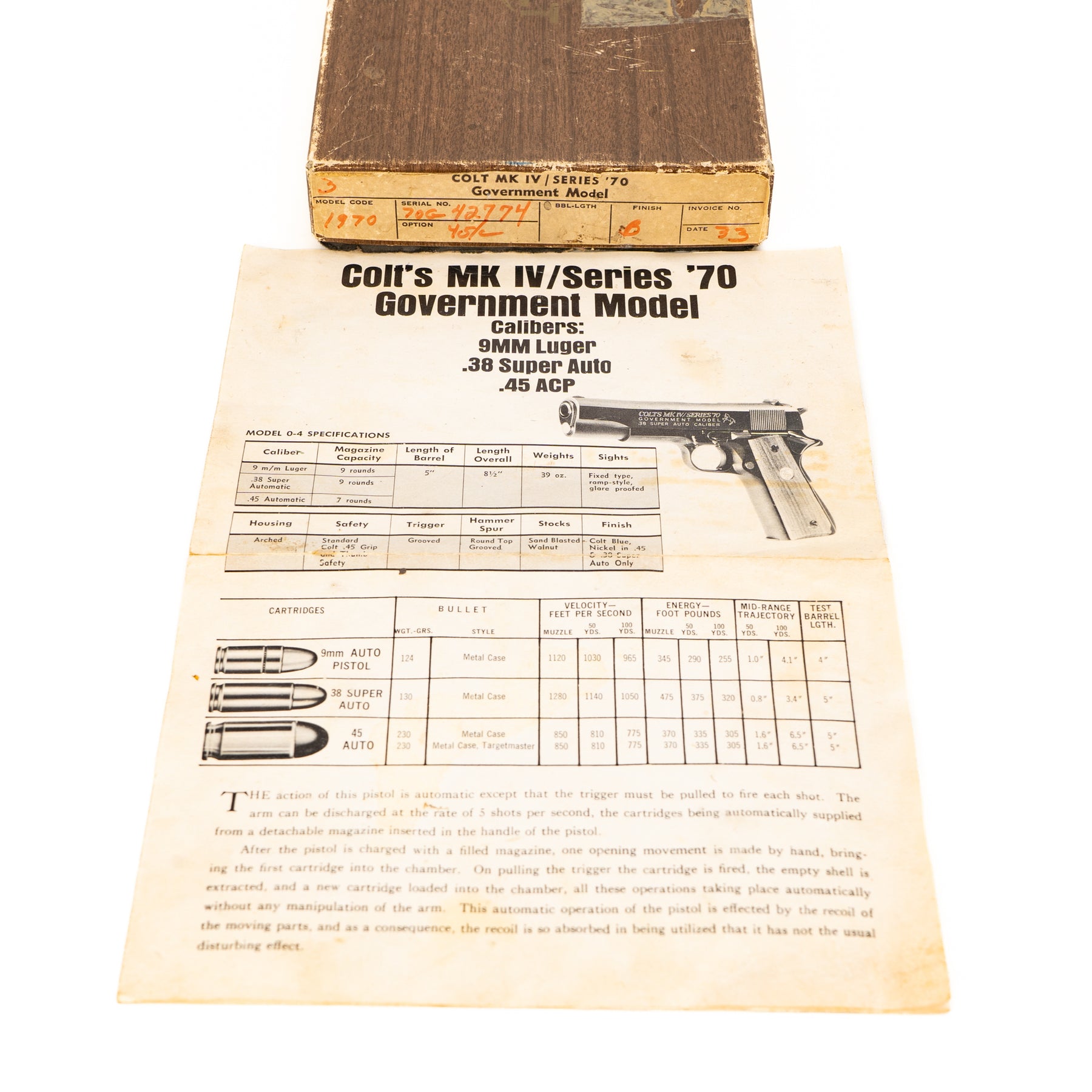 Colt MK IV / Series '70 Government Model Semi-Auto Pistol : .45ACP