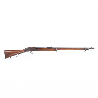 A beautiful old Martini Henry Mk IV chambered in 577/450. Marked with the Crown over VR Enfield 1887 on the right side of the receiver, and extensive additional military markings and broad arrows.