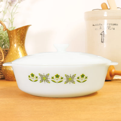 Fire King Meadow Green Casserole Dish with Lid