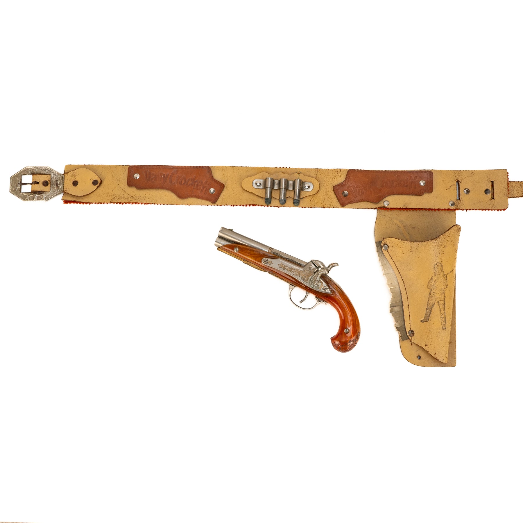 Hubley Davy Crockett Double Hammer Pistol & Leather Holster
