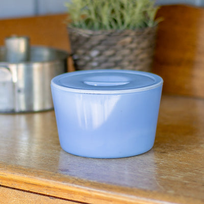 Jeanette Blue Delphite Round Grease Pot with Lid