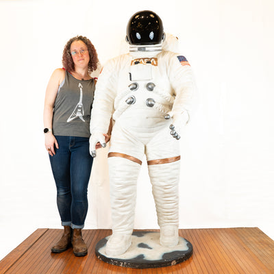 I mean, what can I say? It is a very large, very detailed, LIFE SIZED NASA astronaut. Name is Bif, if it matters. Not sure what the material is, but it's not light and it's hollow. Appears to have something like a plaster coating which they even pressed fabric into to give it a realistic texture. Phenomenally constructed, and ready to jump into service as anything you'd like him to be! Decorate him seasonally! Use him as a Christmas tree during the holidays! Have him greet people with outstretched hand when they come in your house! The possibilities are endless!