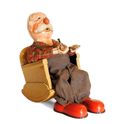 On the list of toys that wouldn't get made today… well, this one isn't anywhere near the top actually. There's some really crazy nonsense that got made back in the day, and I'm not talking lawn darts. This is just your classic smoking Grandpa, sitting in his recliner, puffing away at a pipe. He doesn't work any more, so we'll call him retired and let him live out his days looking cute on a shelf.