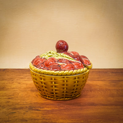 Sarreguemines France Majolica Basket of Cherries Jam Pot with Lid