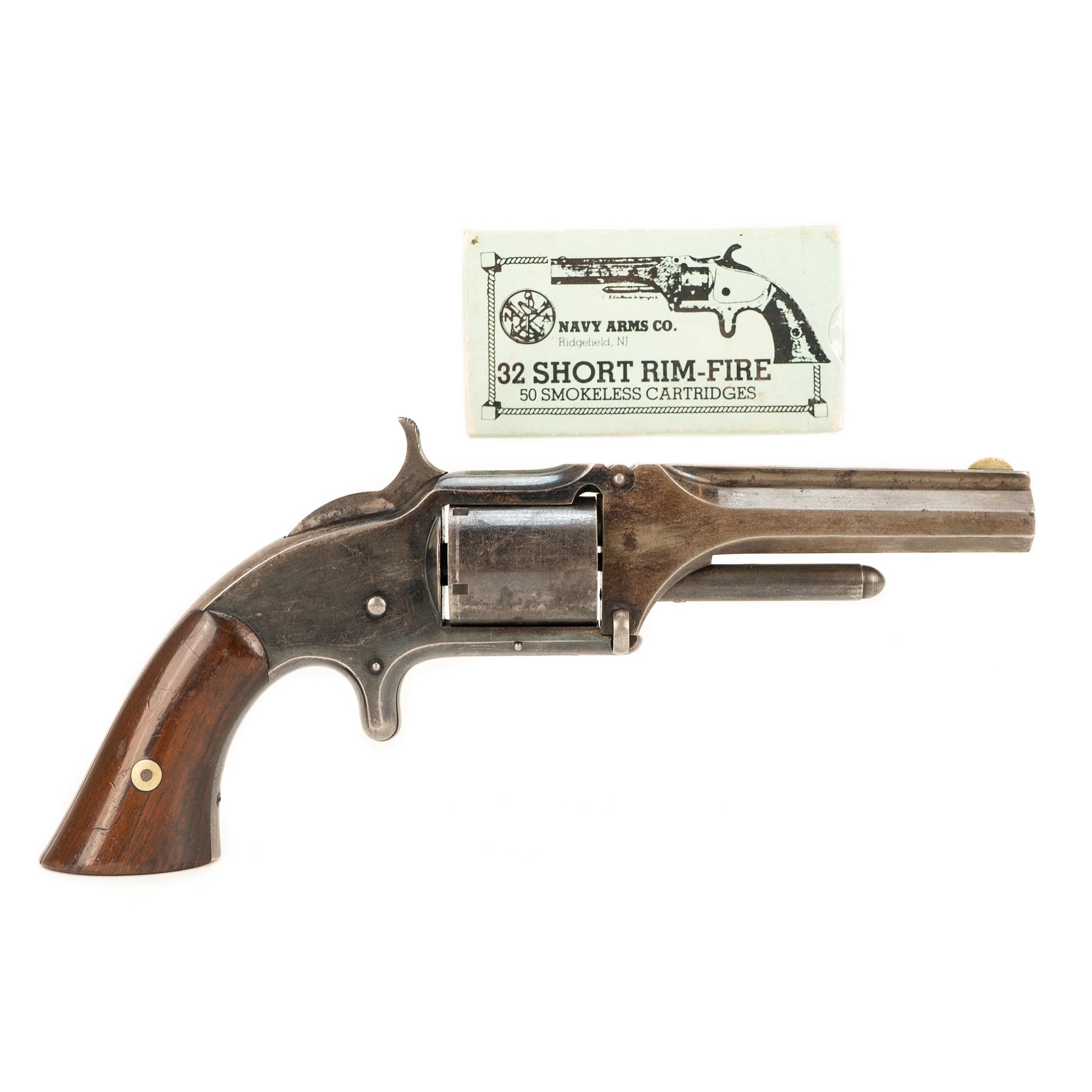 A Smith & Wesson Model 1 1/2 Tip-up Revolver chambered in .32 rimfire, with an unopened 50 round box of ammunition!