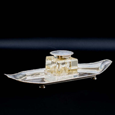 Sterling Silver & Crystal Inkwell by Lee & Wigfull, 1911