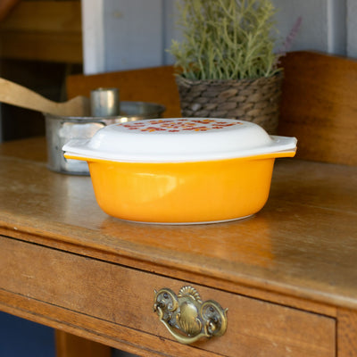 Pyrex 043 Friendship Pattern Oval Casserole with White Lid